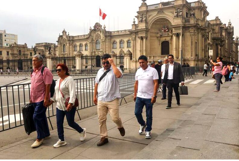 Imagen del 11 de marzo de 2026 de personas caminando cerca del Palacio de Gobierno, en Lima, capital de Perú. (Xinhua/Mariana Bazo)