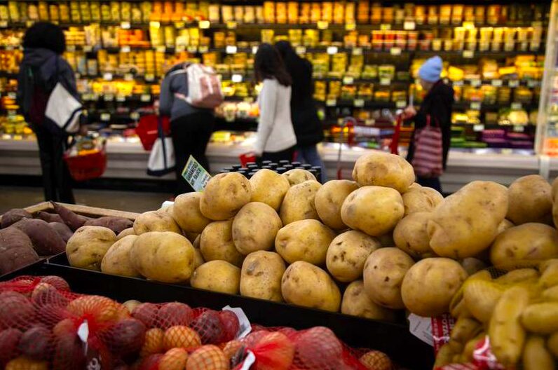 Personas compran comestibles en una tienda, en Nueva York, Estados Unidos, el 28 de marzo de 2025. (Xinhua/Michael Nagle)