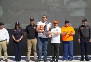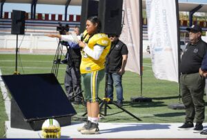 En una fiesta deportiva que tuvo como marco el Estadio Universitario “Prof. Eugenio Alvizo Porras”, Dámaso Anaya encabezó la ceremonia en la que hizo entrega de trofeos a los mejores jugadores de la temporada 2025 y dio la patada de kick off en el centro de la cancha con la presencia de los equipos participantes.