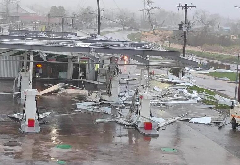 Imagen del 28 de octubre de 2025 de una estación de servicio dañada tras el paso del huracán Melissa en la ciudad de Bahía Montego, Jamaica. (Xinhua/Jamaica Observer)
