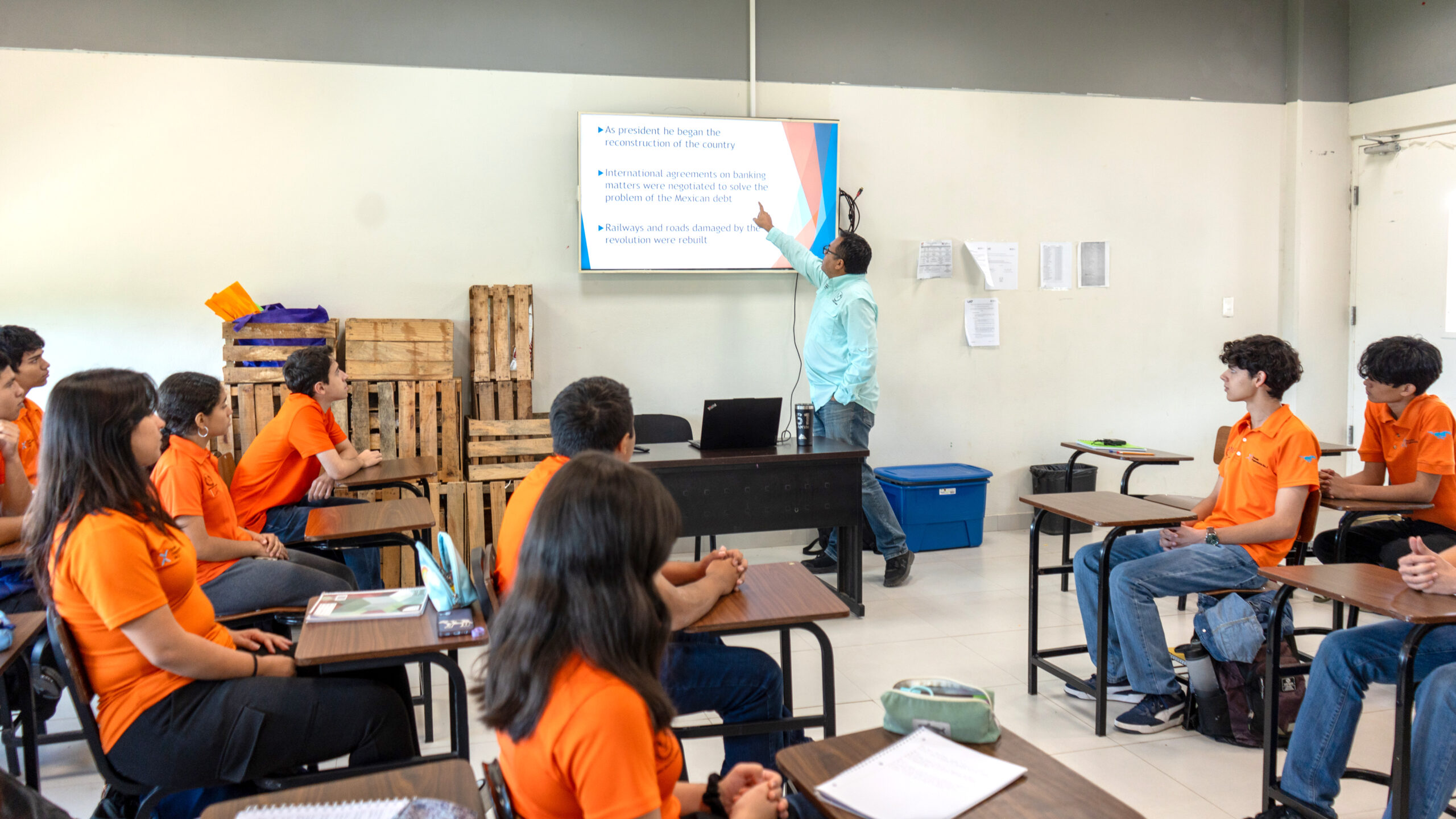 Mencionó que el programa bilingüe representa una de las principales fortalezas de la escuela, al permitir que los jóvenes cursen diversas asignaturas en inglés, fomentando así sus competencias lingüísticas y académicas desde el nivel bachillerato.
