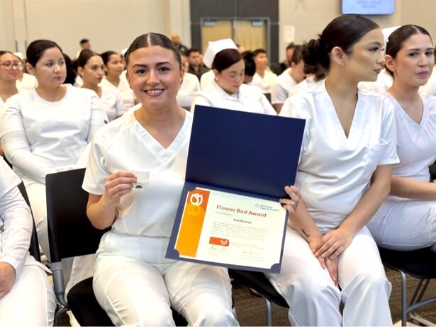 Photo Caption: Alvarez was surprised with the DAISY Award for Extraordinary Nursing Students (formerly known as the Flower Bud award) during her recent pinning ceremony, recognized for her compassionate care and commitment to patients.