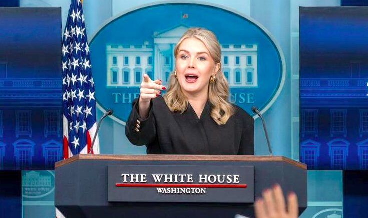 Imagen del 11 de diciembre de 2025 de la secretaria de Prensa de la Casa Blanca, Karoline Leavitt, asistiendo a una conferencia de prensa diaria en la Casa Blanca, en Washington D. C., Estados Unidos. (Xinhua/Li Yuanqing)