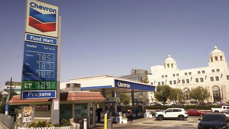 Imagen del 1 de junio de 2022 de los precios del combustible en una estación de servicio en Los Ángeles, California, Estados Unidos. (Xinhua/Zeng Hui)