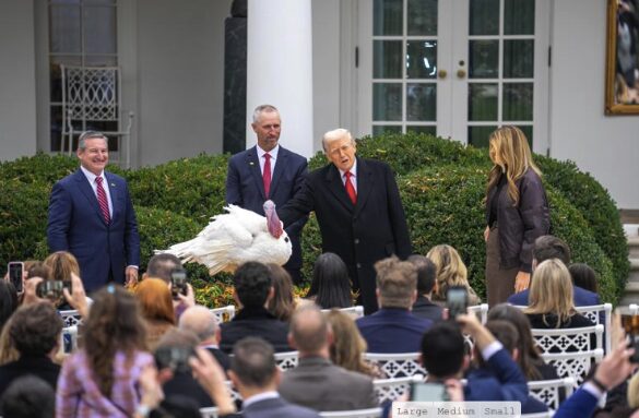 (Xinhua)- El presidente estadounidense, Donald Trump (2-d), asiste a la Ceremonia Nacional de Indulto del Pavo de Acción de Gracias, en la Casa Blanca, en Washington D. C., Estados Unidos, el 25 de noviembre de 2025. (Xinhua/Hu Yousong) (oa) (ah) (ce)